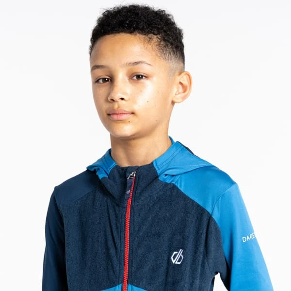 De HERO CORE STRETCH van Dare 2B kan gemakkelijk onder waterdichte jassen en jacks worden gelegd en is een jas met rits en capuchon voor kinderen die een geweldige tweede laag vormt.